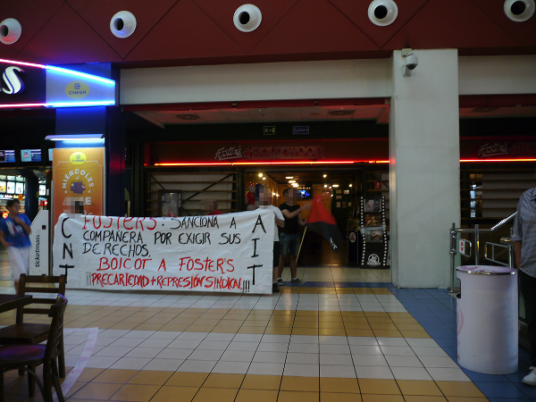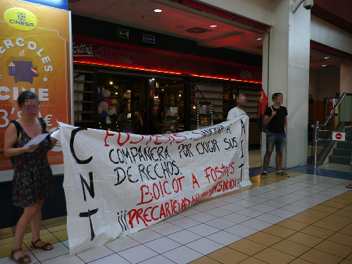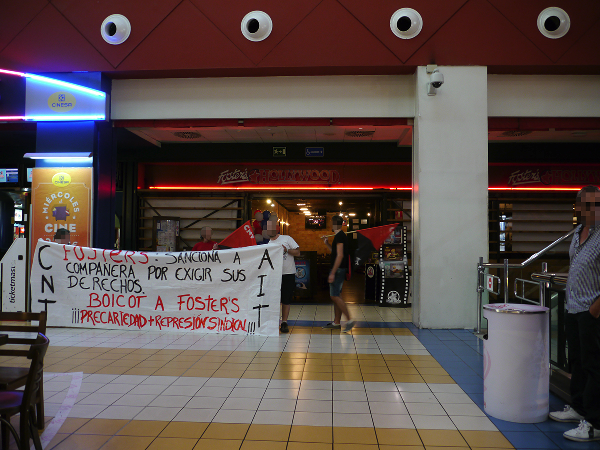 Desde Cnt, en apoyo a trabajadorxs de Foster´s Hollywood hemos iniciado un conflicto para frenar la precariedad y el incumplimiento sistemático de derechos para con lxs trabajadorxs de esta cadena. Por este motivo, el pasado sábado 27 de Junio, varios compañeros del Sindicato de Oficios Varios de Madrid, nos presentamos en el centro comercial Las Rosas para apoyar las reivindicaciones de la sección sindical de CNT en esta empresa.