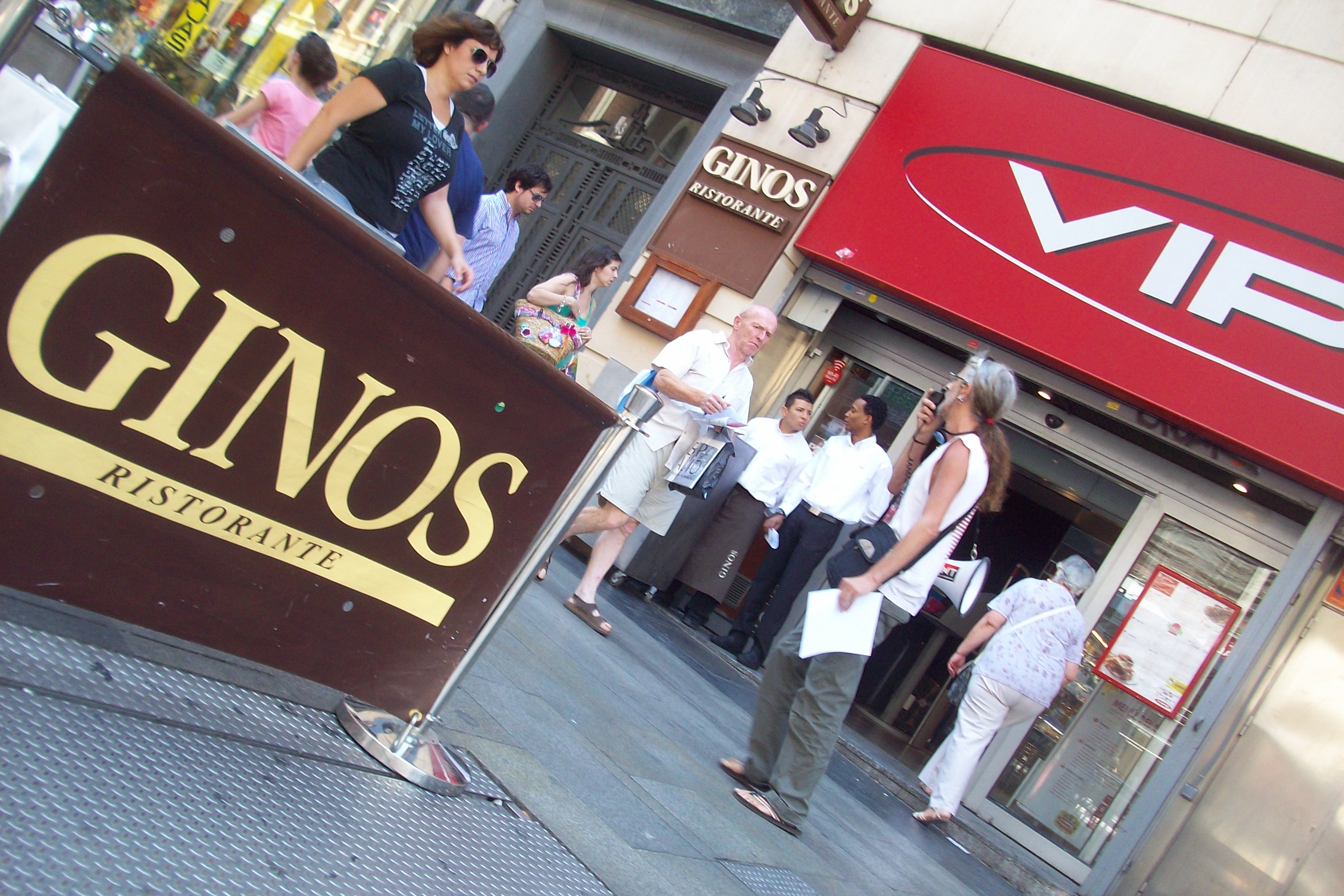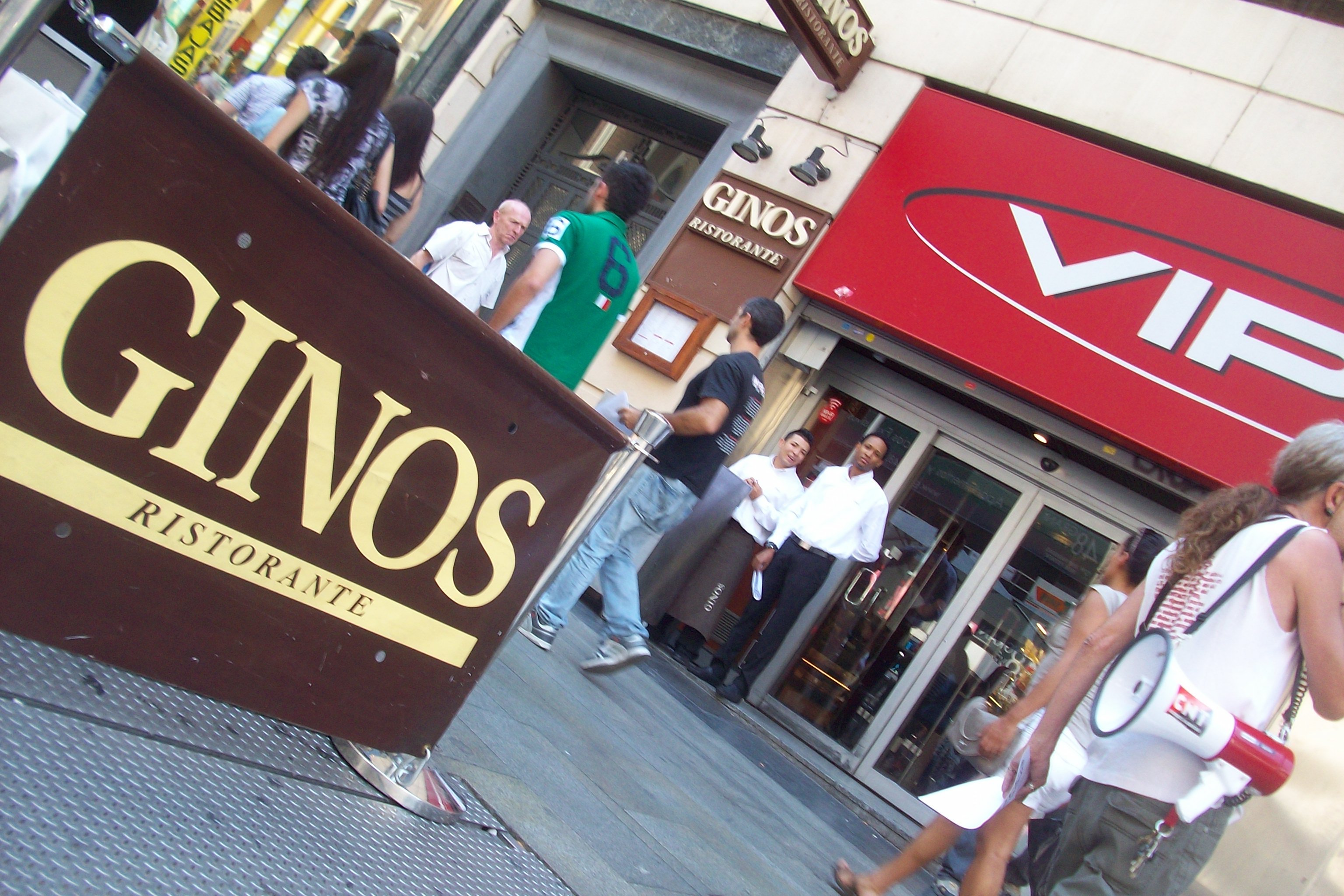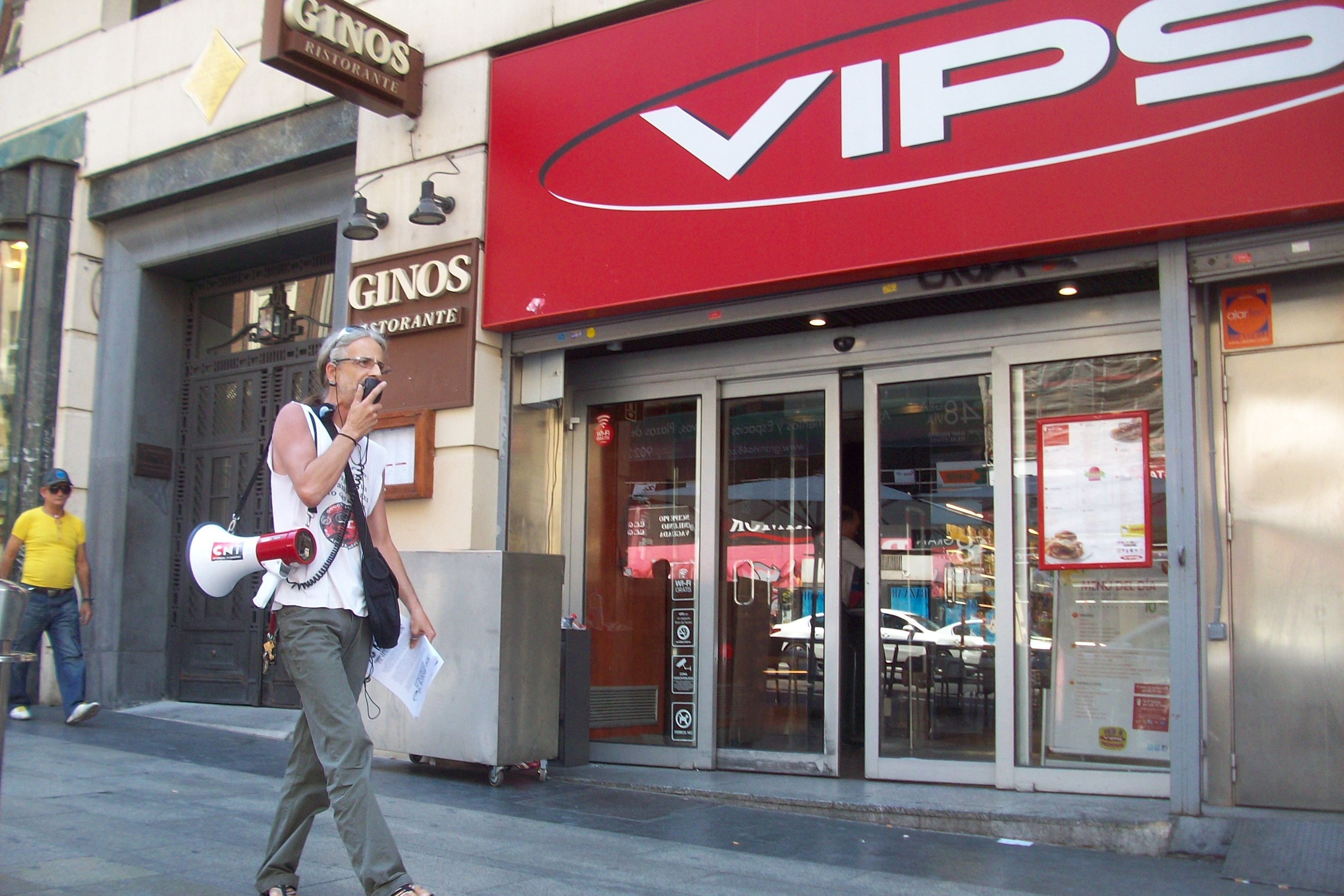 Gino's parafernalia inventada por la cadena VIPS ha sufrido en el dia de hoy 21 de julio la visita de un grupo de anarcosindicalistas que durante una hora ha boicoteado la entrada a este establecimiento.