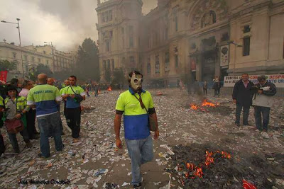 Las empresas concesionarias de la limpieza viaria de Madrid son: OHL, del señor Villar Mir (el que declaró que había pagado sobres al partido popular y no solo a este partido, sino también a los sindicatos vendeobreros CCOO y UGT); FCC, empresa de las Koplowitz y sobre la que ahora, olisqueando la carroña, vuela el multimillonario Bill Gates con la compra de un 6% de la compañía; y Valoriza (del grupo Sacyr Vallehermoso), otra compañía como las anteriores, que se han forrado con el ladrillo hasta que no había nada que rascar y ahora, entre otros negocios, se dedican a explotar a nuestros compañeros/as de limpieza viaria, con el contubernio de toda la clase política y el apoyo encubierto de los “sindicatos” del estado.