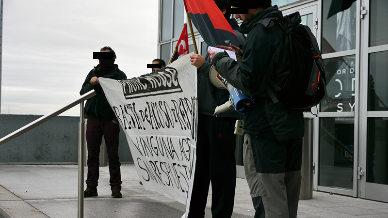 El sábado 29N la CNT-AIT de Madrid se presentó de forma inesperada en la convención anual de managers (jefes de tienda, jefes de zona y directivos de la empresa) para ejercer la acción directa contra esta empresa por el acoso, represión e incumplimientos sufridos por las trabajadoras/es afiliadas/os a la CNT. Desde las 9 de la mañana estuvimos presente con pancarta, panfletos y megáfono esperando la llegada de las cerca de mil personas que acudieron al evento. Uno de esos actos empresariales cuyo objetivo, muy lejos de la coordinación u organización de la empresa, es el adoctrinamiento de trabajadores/as en un corporativismo que les enseña a "amar" a la compañía y defenderla frente a todo, incluso frente a sus propias necesidades como trabajadores/as. De ahí todo el aspecto lúdico-festivo de estos eventos: fin de semana pagado, música, regalos, catering... esta táctica empresarial ha funcionado muy bien a grandes compañías: "la empresa eres tú", "formas parte de una familia"...