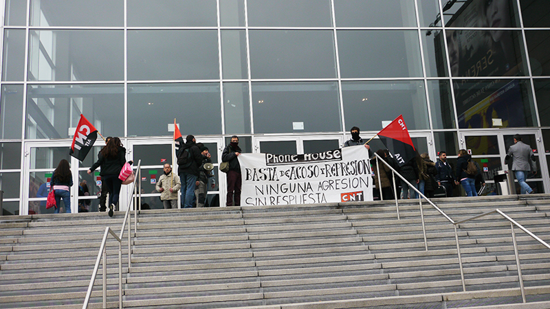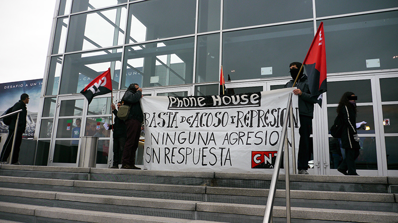 Sin embargo Phone House se ha destacado en los últimos meses por ser una voraz organización explotadora que, ante las mínimas reclamaciones de grupos de trabajadores/as, ha empezado una total persecución y represión de los mismos/as. Varias trabajadoras se encuentran en situación de baja por ansiedad tras el acoso sufrido en sus tiendas. Ha habido varios traslados forzosos y varios despidos como clara represión a la acción sindical, como el caso de la compañera Cristina, trasladada a 2h de su casa tras el piquete en su tienda de La Vaguada. Las trabajadoras/es de CNT comenzaron denunciando incumplimientos en materia de horarios, salarios, PRL y transparencia, pero ahora se enfrentan a una situación de acoso dificilmente soportable. Las Secciones Sindicales de CNT siguen sin estar reconocidas y la empresa no ha pretendido aún negociar nada com ellas. Solo persigue a los trabajadores uno a uno, amenazando, reprimiendo de la forma más rastrera, incluso utilizando a trabajadores/as para que también ejerzan ellos/as el acoso.