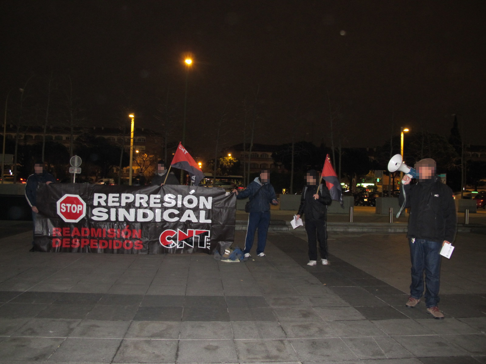 El piquete se acabó a las 19:40. Ante todo agradecer a todos los/as compas su apoyo y a toda la anarcosindical la solidaridad mostrada, y decirle a Villar Mir que no vamos a parar hasta la readmisión del compañero Angel.