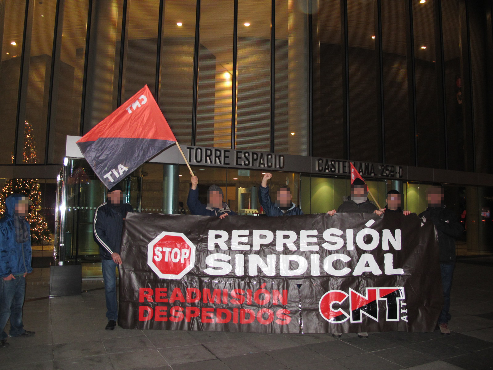 El 17 de diciembre sobre las 18.00 se realizó un nuevo piquete contra esta empresa explotadora que es OHL, en su edificio mostruoso en Torre Espacio, una maquina de destrucción de la clase obrera, como se demostró con el despido de 22 compañeros/as ,entre los que se encuentra nuestro compañero Angel. Pues bien, la anarcosindical no lo va consentir; al señor Villar Mir no le basta con echar a trabajadores/as sin escrúpulos, sino que busca hacerse con edificios como el del Banco de Santander, perteneciente al señor Botin, en la Plaza Canalejas, donde quiere hacer un centro comercial, destrozando un edificio historico del centro de Madrid y vulnerando todas las leyes urbanisticas.