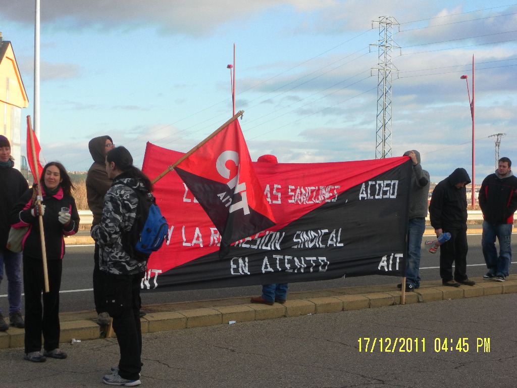 A las 15 horas estaba convocada una Concentración-Piquete a las puertas de la empresa Atento en el polígono "Trobajo del Camino". Como ya informamos anteriormente, continúan sancionados dos compañeros de la sección sindical de CNT a raíz de la pasada ola de calor vivida en el edificio que Telefónica tiene a las afueras de León. En total hay cuatro personas sancionadas entre 30 y 60 días de empleo y sueldo.
