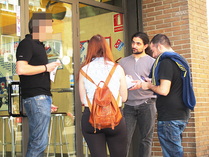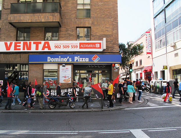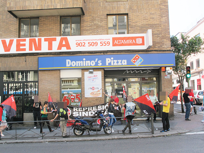 En pleno centro de Madrid, concretamente en la calle Atocha, compañer@s del sindicato de oficios varios de Madrid y de la federación local, nos concentramos el pasado Sábado 12 de Abril, delante de Domino's Pizza, para exigir la readmisión del compañero Emilio de CNT Vigo y para exigir que rectifiquen las falsas acusaciones contra su persona.