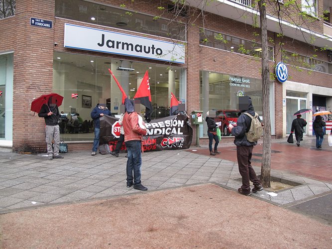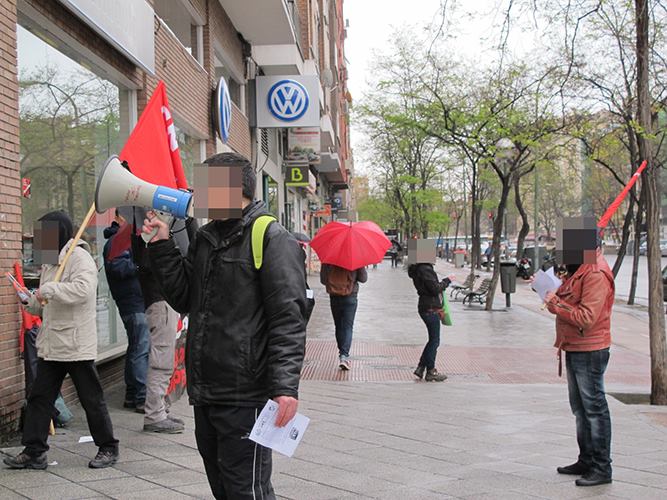 El pasado Sábado 29 de Marzo, 15 compañer@s del Sindicato de Oficios Varios de Madrid nos concentramos durante casi dos horas delante de un concesionario Volkswagen (cliente de TNS) en la Glorieta de Santa María de la Cabeza, en pleno centro de Madrid.