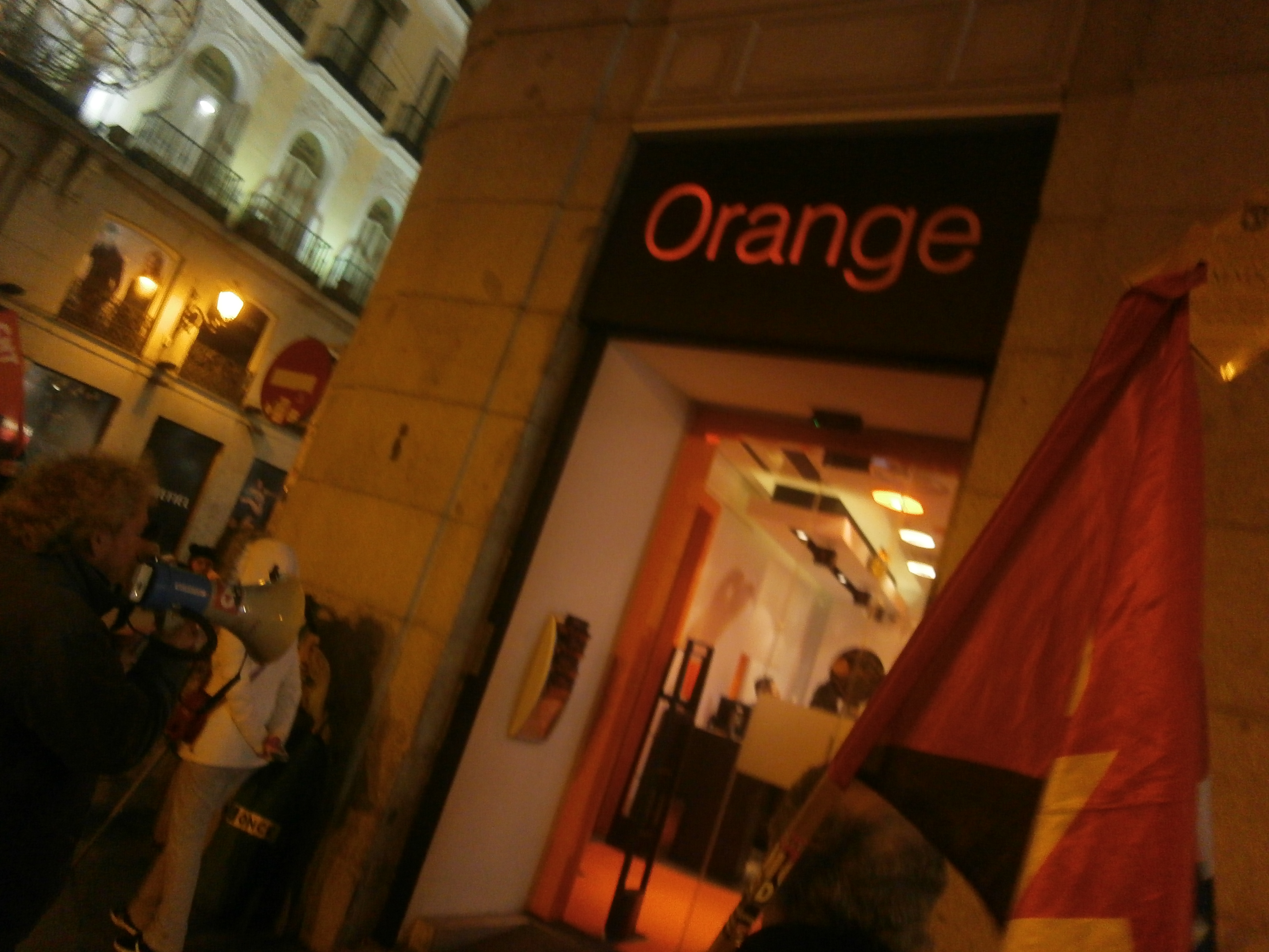 En las dos tiendas Orange donde hizo presencia la CNT vimos la misma imagen por parte de l@s encargad@s que, teléfono en mano y en claro estado de nerviosismo, gritaban al teléfono mientras señalaban lo que estaba ocurriendo en la calle; todo en medio de una tienda vacía y muestras de solidaridad de mucha gente.