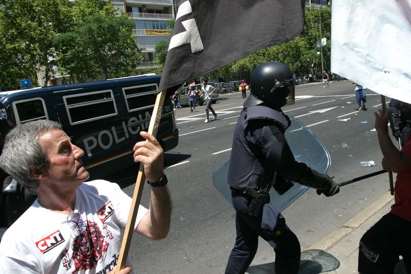 [FOTOS] Carga policial contra el bloque de la CNT en la manifestación de apoyo a lxs minerxs día 11 julio